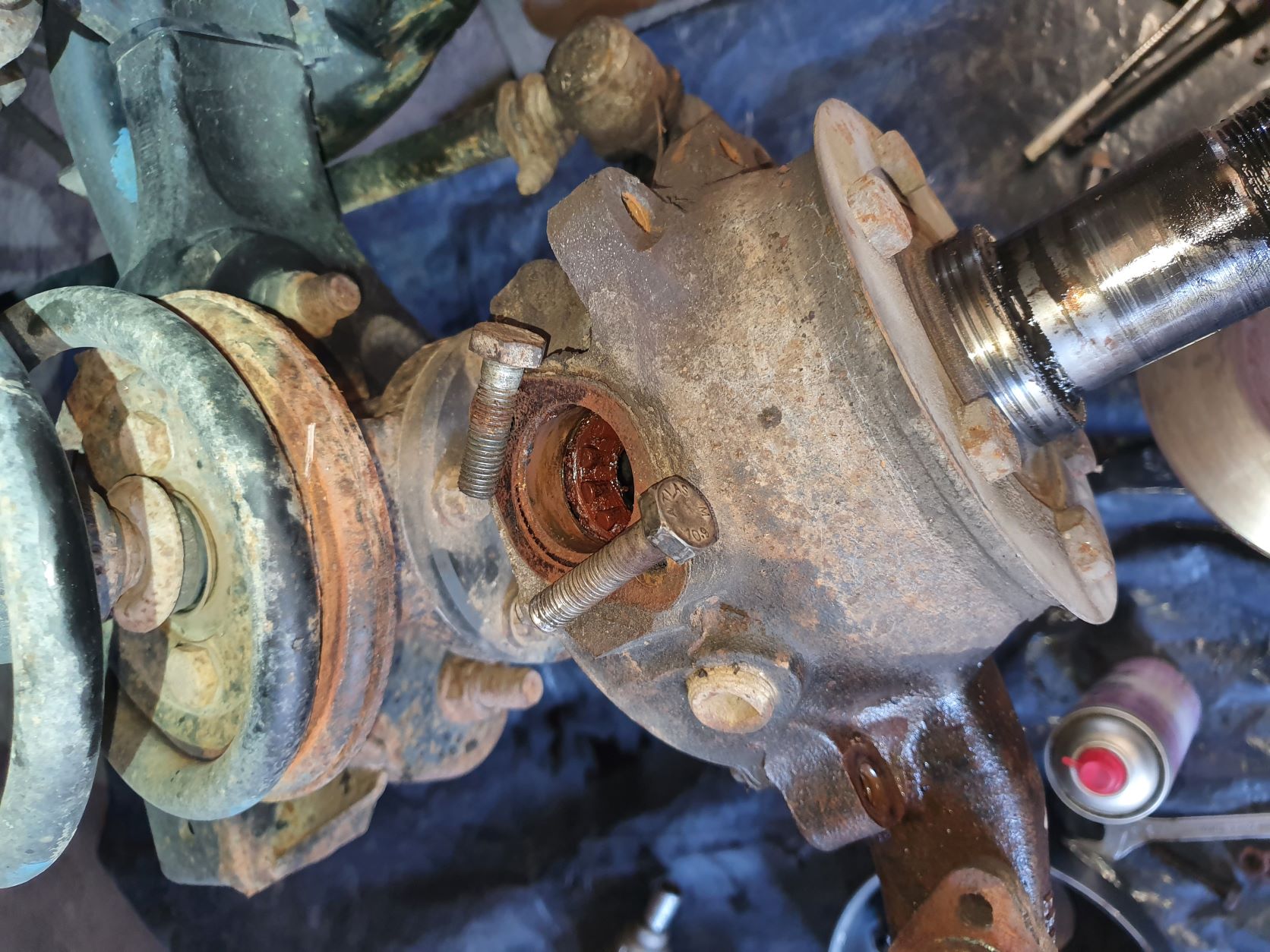 A droite le roulement de roue à été remplacé. Les vis de la main ne sont pas d'origine et ce ne sont pas des 10.9