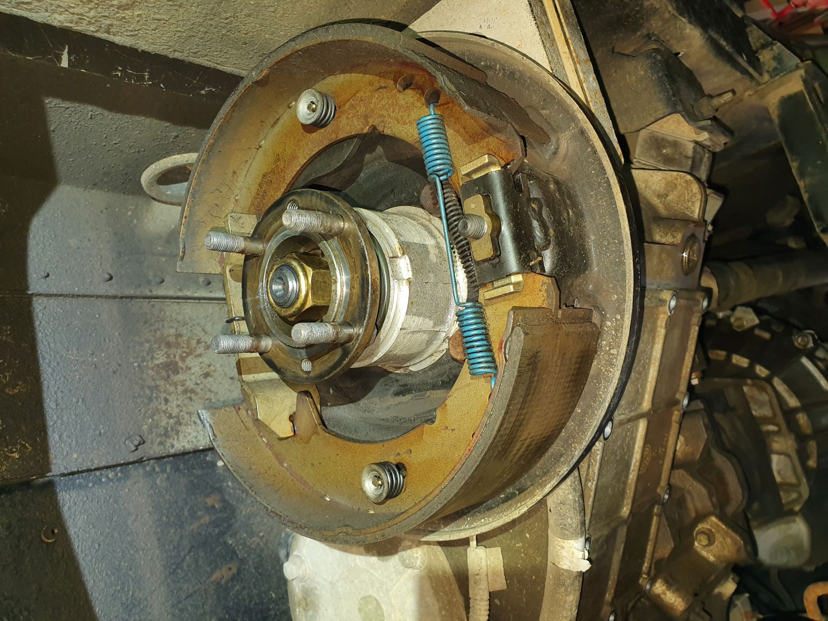 J'ai tenté de sentir une anomalie dans sont fonctionnement en bougeant les arbres de transmission diff bloqué ou non mais je n'ai rien trouvé sauf du jeu entre le croisillon (desserré) et le tambour de frein!