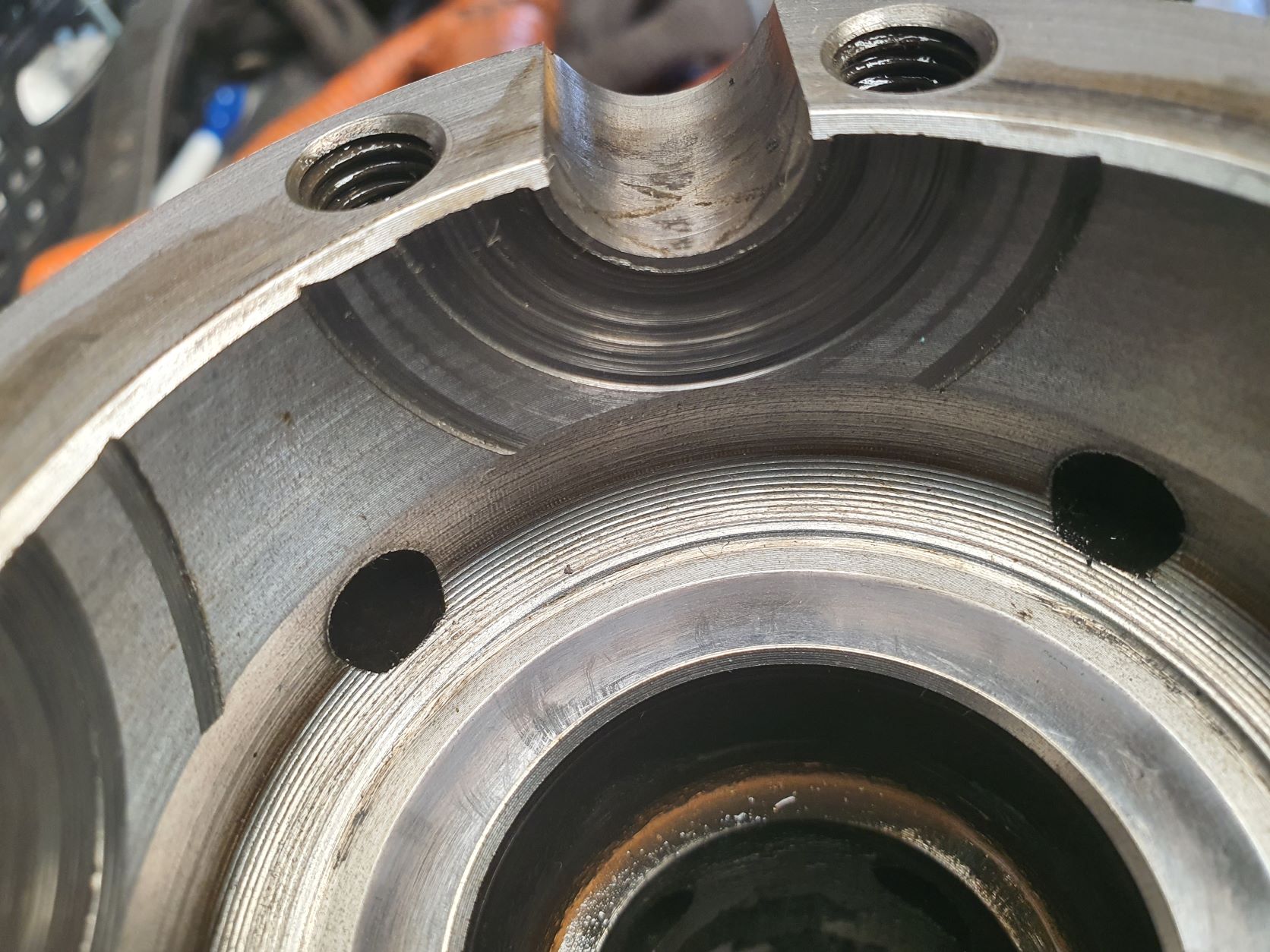 Concernant le tambour de frein à main, je ne perçois pas les marques que tu évoques dans les trous de vis, bref je ne vois rien d'anormal.