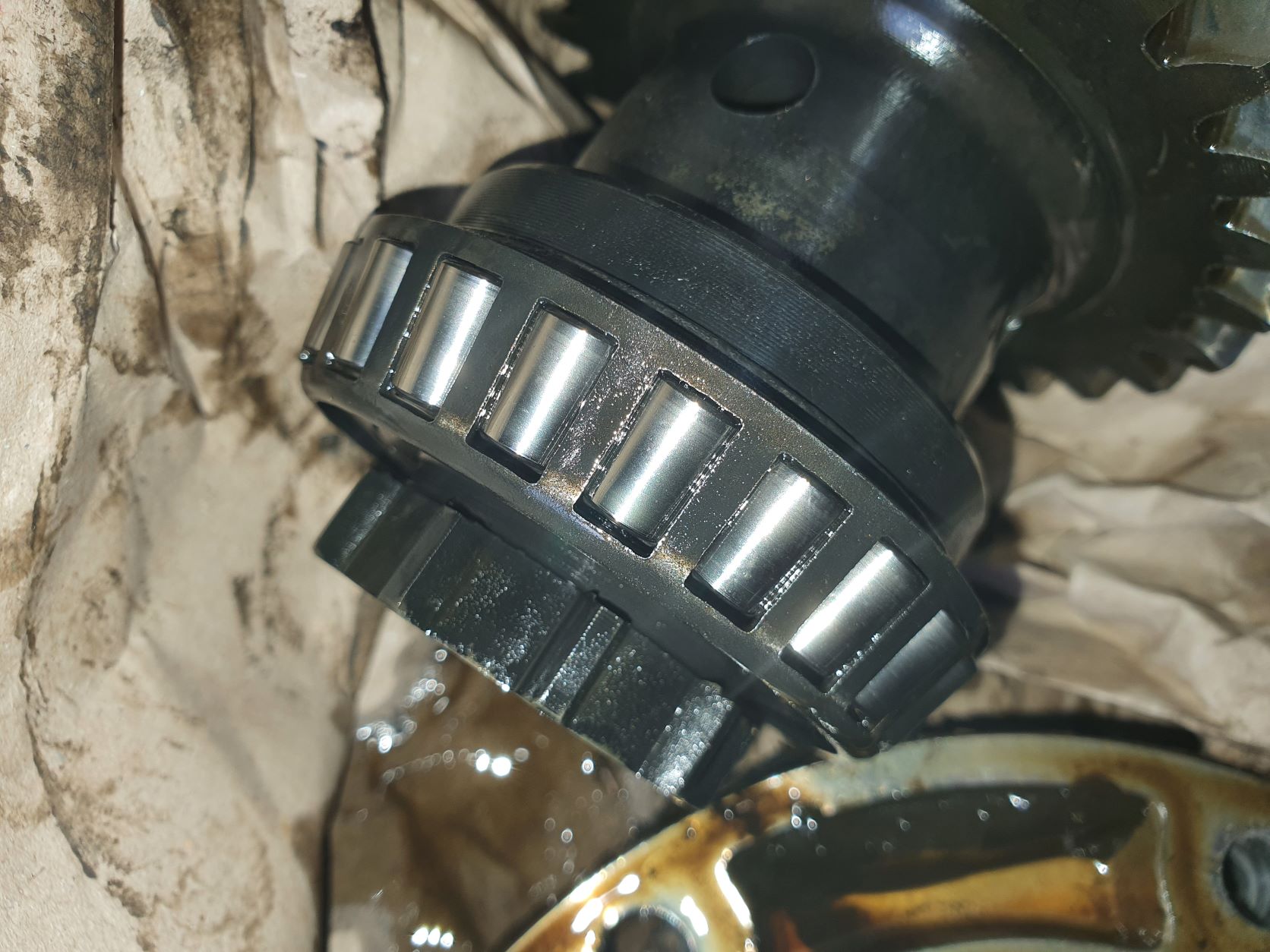 Tout à l'air en bon état: un peu de boue huileuse dans le couvercle. Les roulements ont l'air ok.