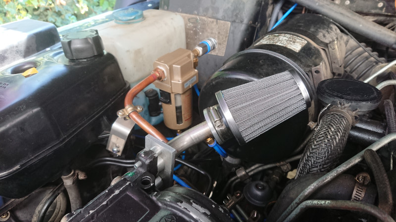 J'ai mis un clapet anti-retour avant la réserve. Cette dernière ne sert qu'à alimenter les blocs ARB, et evite donc au compresseur de fonctionner en permanence.