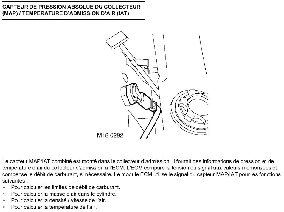 par ailleurs, il est précisé qu'un défaut sur ce capteur se traduira par les anomalies suivantes :