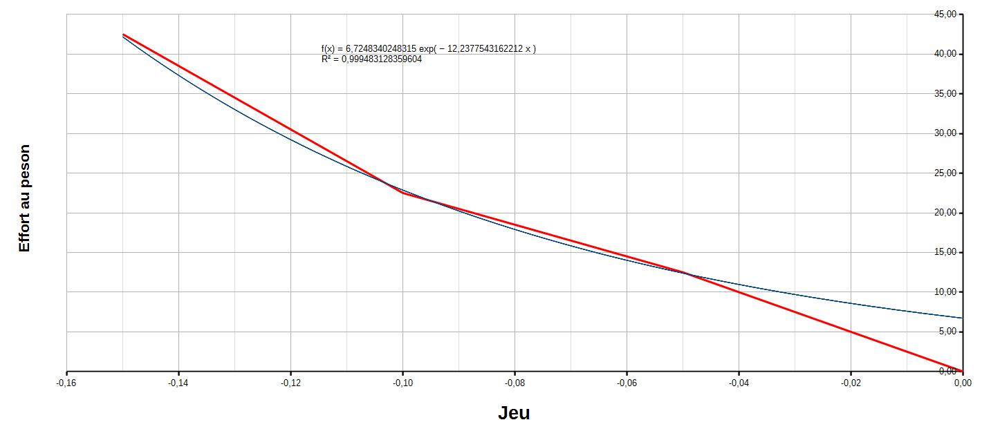 Cale 0,15 jeu -0,05 effort 15 à 10 N