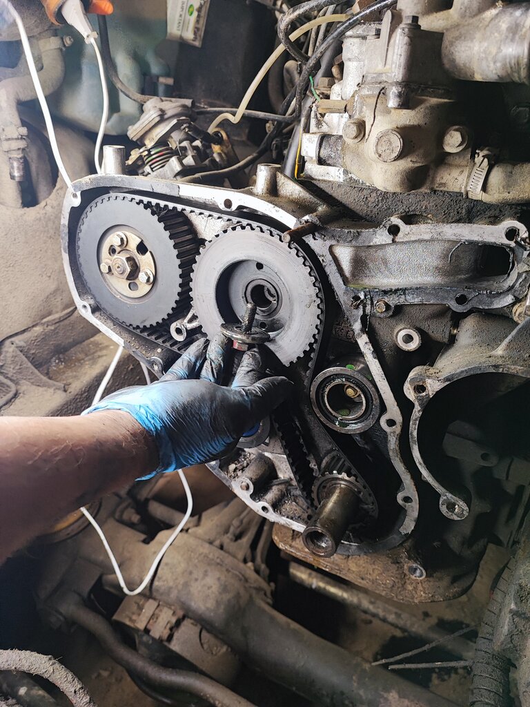 et la poulie d arbre a came,la partie avec la rainure déchirer, l arbre a came bloque a un moment de la rotation , va falloir démonté pour voir, bon les tiges sont tout plié ça je l avais vu depuis un moment.