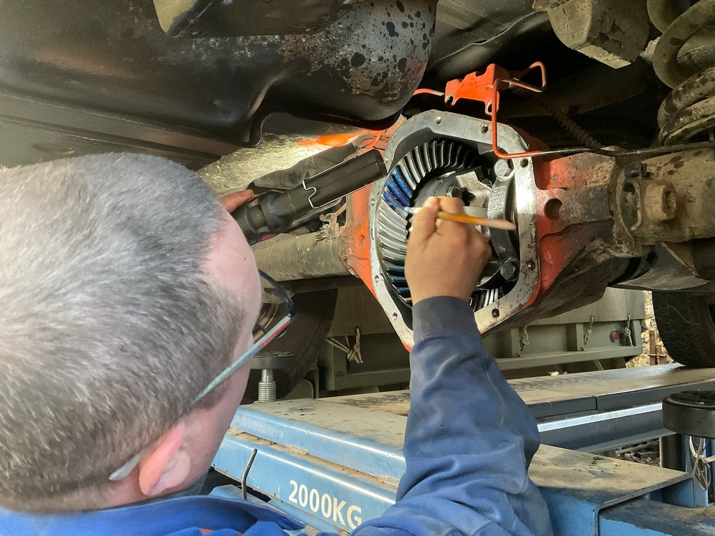Nous avons une calotte soudée à l'avant, il faut déposer le différentiel pour pouvoir vérifier les jeux et portées.
