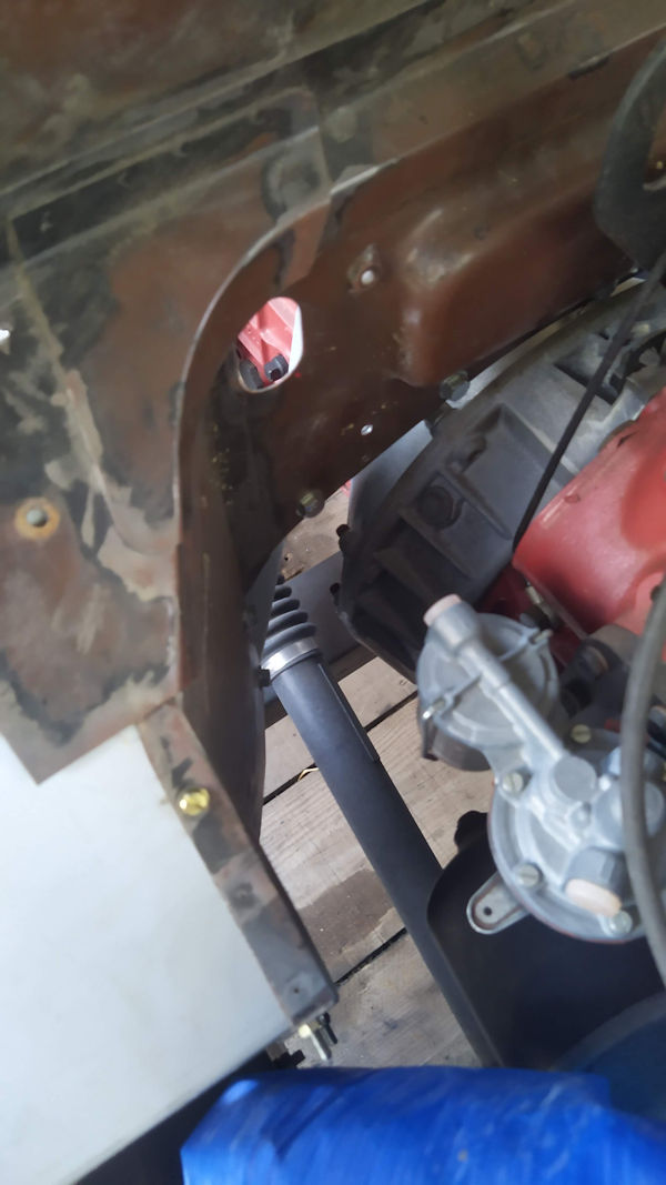 Jonction footbox/Montant : Jonction Footbox/Tunnel embrayage côté moteur : Jonction Footbox/Tunnel embrayage côté habitacle en bas : Jonction Footbox/Tunnel embrayage côté habitacle en haut : Il y a pas mal de place entre le tablier et l'ensemble moteur-boîte : Coté conducteur, c'est ... perfectible ...