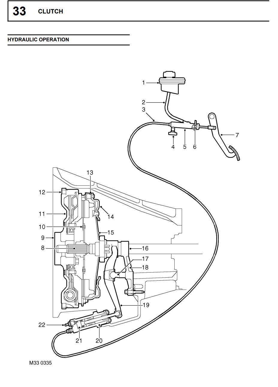 Sur mon 90 Td5, à la pédale, mesure effectuée tangentiellement au déplacement (donc vers l'angle où se joignent tablier et plancher) j'ai d'abord 2cm de déplacement à vide (correspondant au jeu entre la tige de poussée et le piston de l'émetteur), puis 14cm de course jusqu'au plancher. Le débrayage devrait donc se faire juste un peu plus base que la mi-course de la pédale.