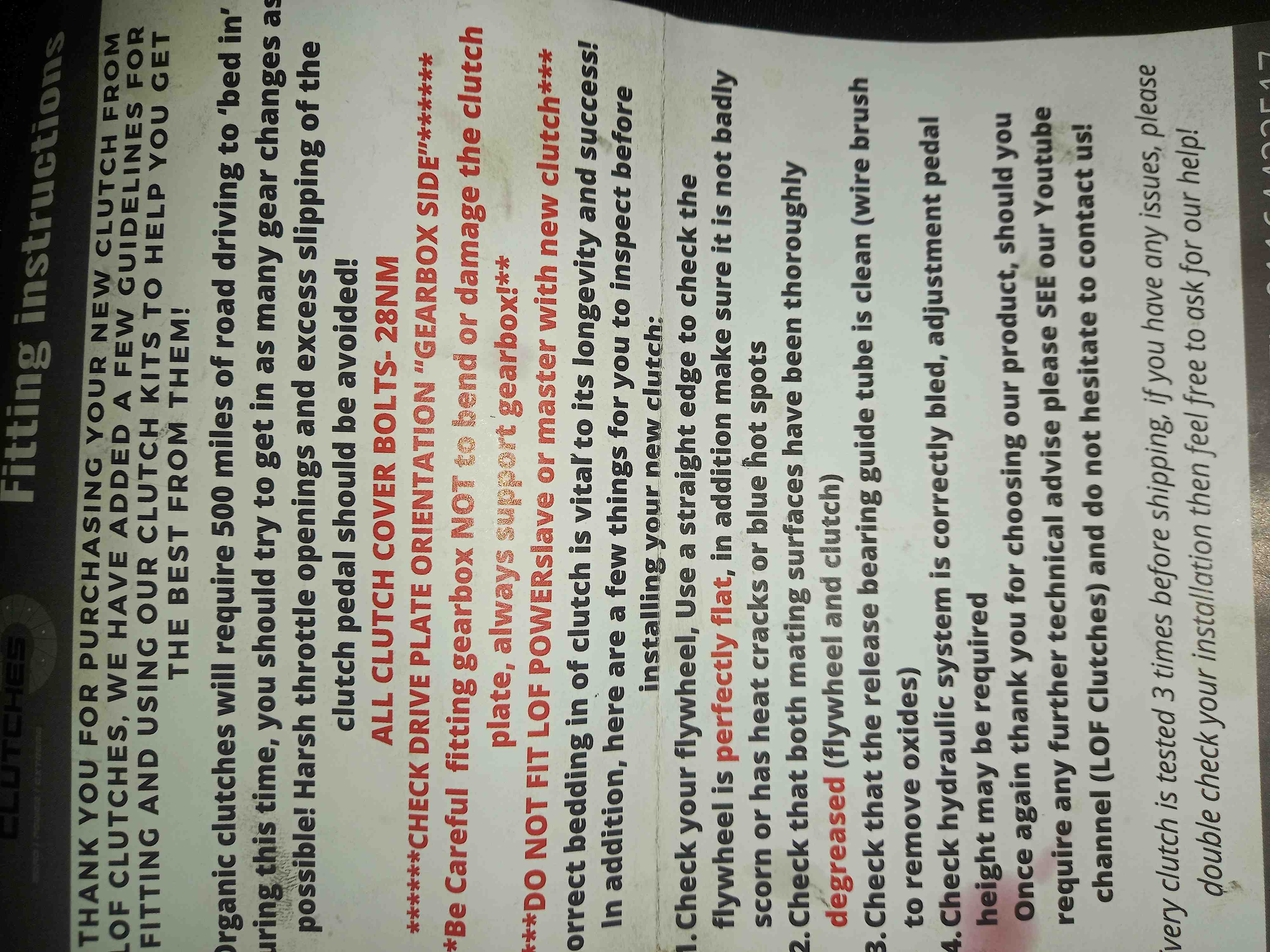En fait, ils disent qu'il ne faut pas installer leur émetteur ni leur récepteur "LOF power" tant que l'embrayage n'est pas rôdé. De même, sur leur site, on voit qu'il ne faut pas installer les deux (émetteur ET récepteur "power").