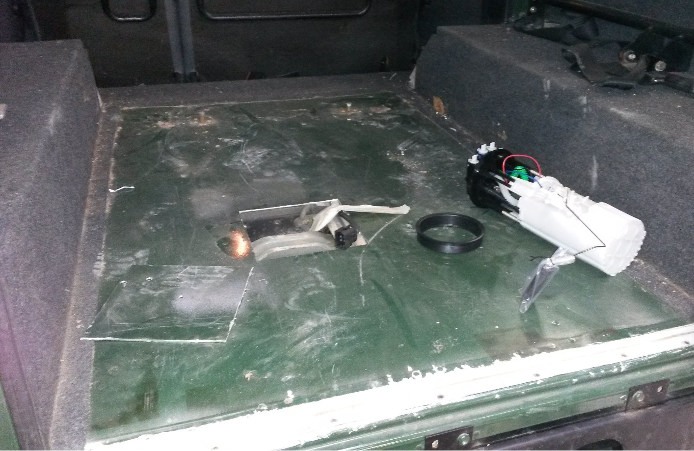 A priori, j'exclue la pompe immergée, car elle a été changée depuis : si l'ancienne fonctionnait bien, je l'ai changée à titre préventif lorsque j'ai fait remplacer la traverse arrière du châssis, car il fallait descendre le réservoir (j'en avais profité pour faire découper une trappe au dessus de celui-ci, pour accéder à ma pompe sans avoir à le redéposer).