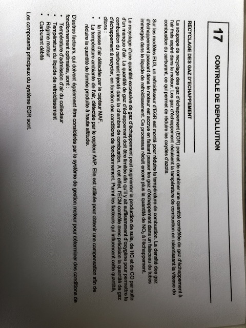 Quoi qu'il en soit, passe-le avec l'EGR neutralisé (pincement/obturation de la commande à dépression). Explique-lui que tu as recherché le défaut, remplacé plusieurs composants, mais que les résultats ne te semblent toujours pas totalement concluants.