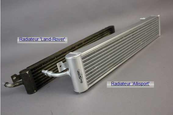 La ste britannique Allisport propose un radiateur plus gros, plus performant que celui d'origine. Depuis son montage, je n'ai plus jamais eu de montée en température de la BVA amenant à l'allumage du petit voyant au TdB, ce qui m'était arrivé 2 ou 3 fois seulement, avant.