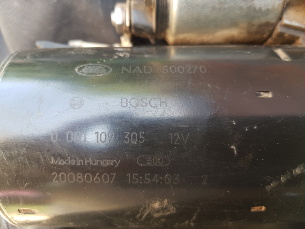 Pour le démarreur, j'ai également eu le problème sur mon DEF TD4 de 2009. Plus du tout de bruit à la mise en route, même pas un bruit de relais. J'ai changé le démarreur par un modèle BOSCH à environ 165 Euros (pour 750 Euros pour le modèle étiqueté Land Rover). Tout est rentré dans l'ordre. La couronne n'était pas marquée. Pour le démontage du démarreur, j'ai pratiqué une ouverture (brèche) dans le pare boue de la roue avant gauche en découpant la fibre avec une lame de scie sauteuse au bout d'un manche. Avec la roue retirée, cela devient très simple de démonter le démarreur et de le sortir par le bas. Pour info, le nouveau démarreur BOSCH (de 2020) a l'air de sortir de la même usine que la pièce d'origine de 2008