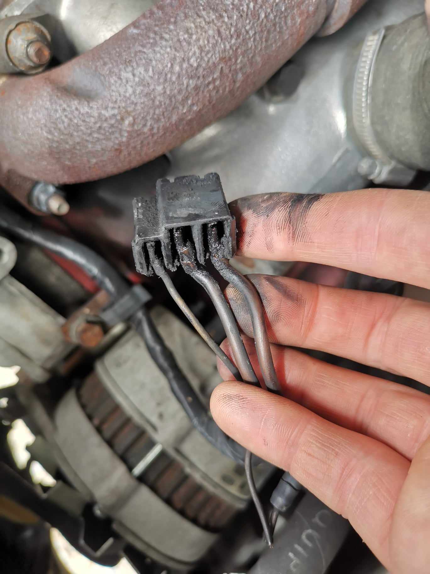 Sur ce fil il y a deux tensions possibles sur la cosse de l’alternateur 0V moteur arrêté et environ 12 V moteur tournant. Si tu fais la mesure sur le connecteur 3 broches tu dois avoir 0V sans le contact et 12 V environ avec le contact mis. C’est le petit fil sur le connecteur 3 fils. Mais si tu veux contrôler de façon simple le circuit d’excitation tu mets ce petit fil sur la carcasse de l’alternateur c’est à dire à la masse et si ton voyant de charge s’allume quand tu mets le contact c’est que le circuit de charge est bon.