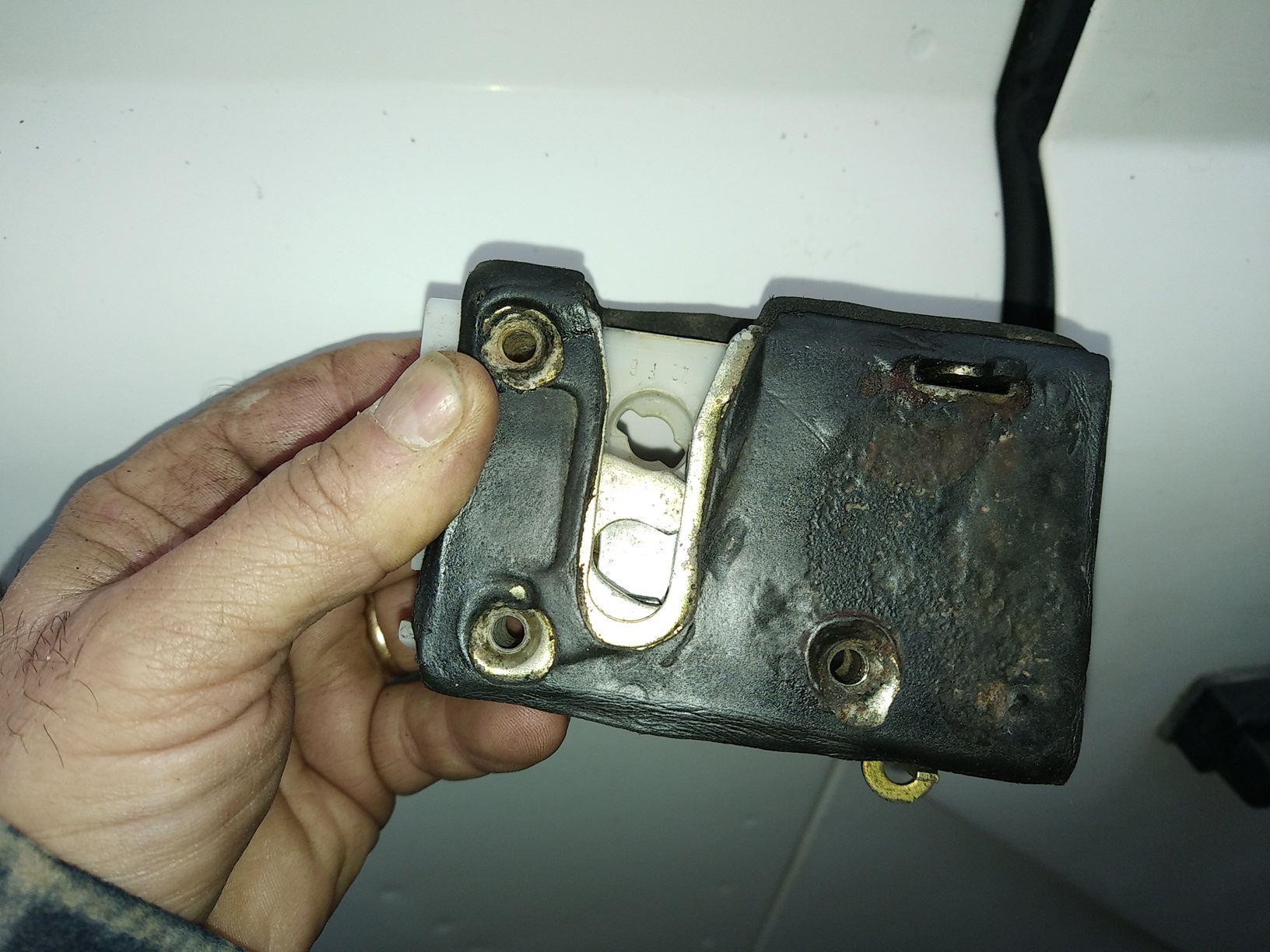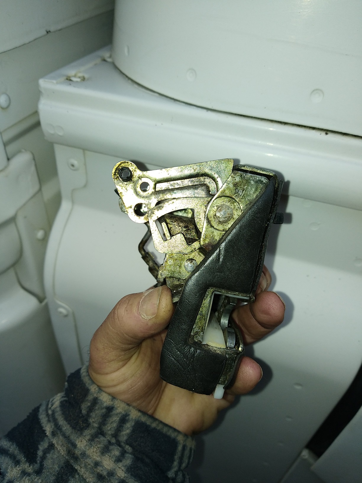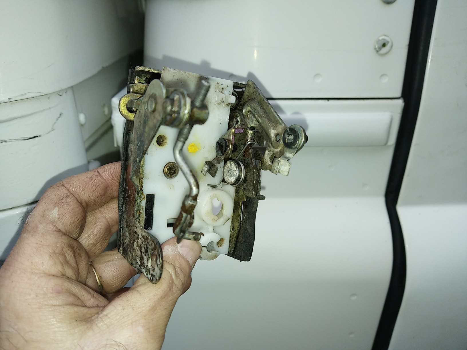 sur la gauche il y a la commande d'ouverture du pêne, à droite les verrouillages (fermeture de porte et sécurité enfant, c'est une serrure de porte AR)