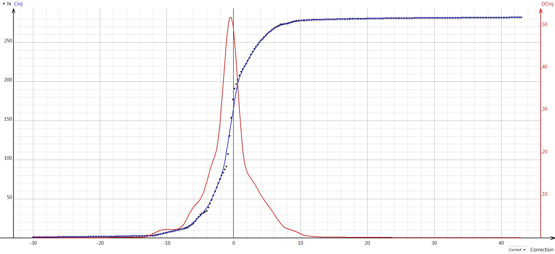 En multipliant les débits instantanés par le régime moteur, on obtient la fonction reflétant l’énergie fournie au moteur par le système d’injection (courbe rouge, dénommée Vi).