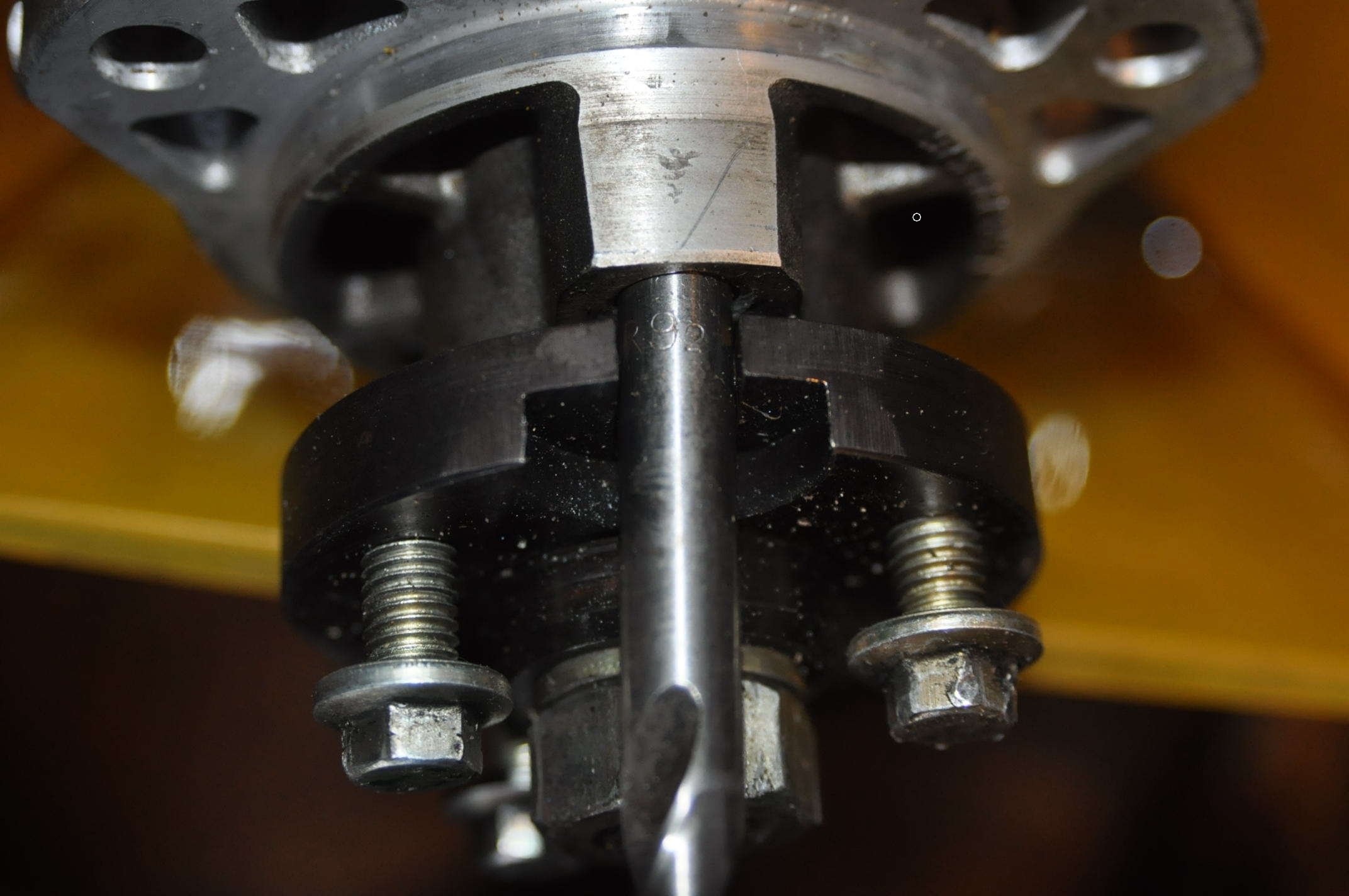 - on immobilise ensuite la bride dans un montage spécial dont le but est de ne pas faire transiter le couple de serrage par la pige de la photo ou, pire, par le système d'immobilisation de l'arbre de pompe ;