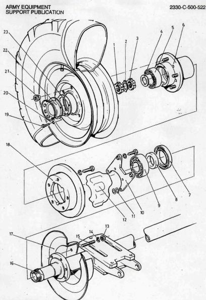 Eléments constitutifs d'un essieu de remorque Sankey trailer MKIII.png