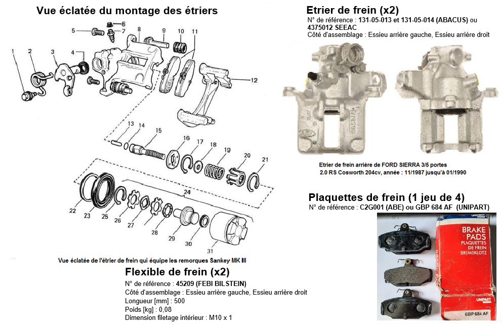 J'ai trouvé les références des pièces à changer en faisant des recherches sur internet, suite à la dépose de l'ensemble étriers et roulements.