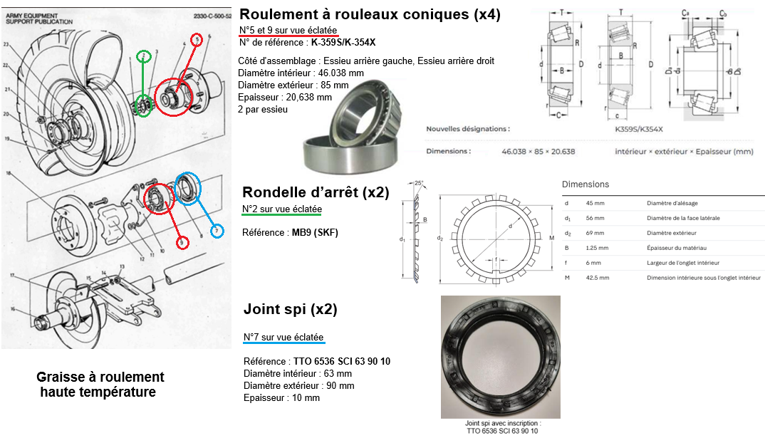 Après bien des difficultés, j'ai fini par trouver un distributeur local pour l'industrie, qui me propose des roulements NTN 4T-359S/354X pour 25 € ht, soit 30 € ttc le roulement, ce qui est 20% moins cher que les propositions reçues par internet (123 r...t et autres ....). Ils vont me fournir aussi les joints spi NBR 63 x 90 x10 CC, à 6 € ht.
