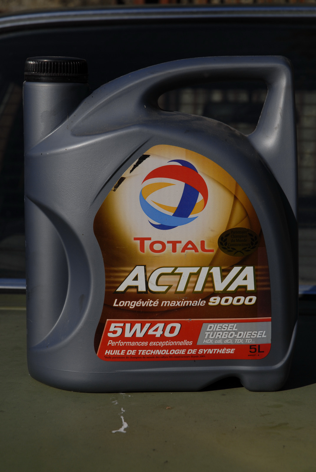 Dernier point : le grade SAE est indiqué en grosses lettres sur les bidons d’huile……nous avons ci-dessous une SAE 5W40.