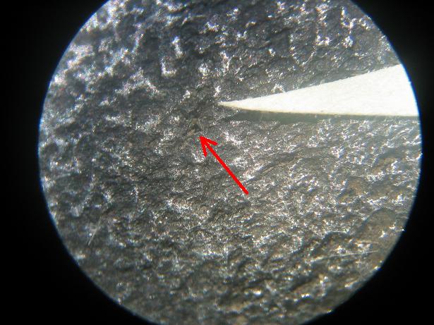 La vue au niveau de la fracture montre très bien que les piqûres de corrosion s'enfoncent dans la matière. Le diamètre utile pour résister à la torsion diminue fortement, d'autant plus qu'il y a de véritables concentration de contraintes en bout de fissures.