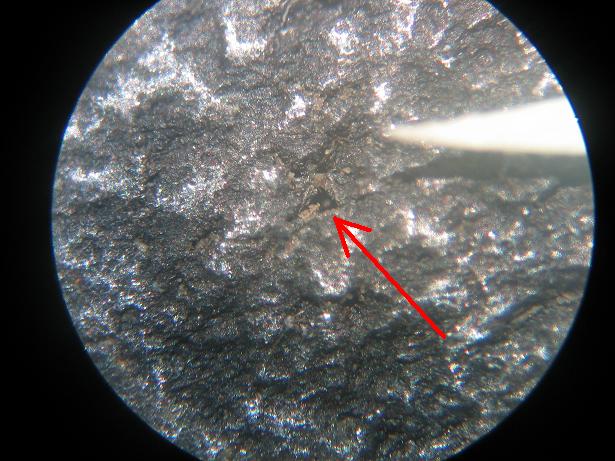 La vue au niveau de la fracture montre très bien que les piqûres de corrosion s'enfoncent dans la matière. Le diamètre utile pour résister à la torsion diminue fortement, d'autant plus qu'il y a de véritables concentration de contraintes en bout de fissures.