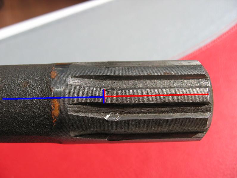 La zone recouverte par la ligne rouge est la partie engrenée qui n'est pas soumise à la torsion sous l'effet du couple.