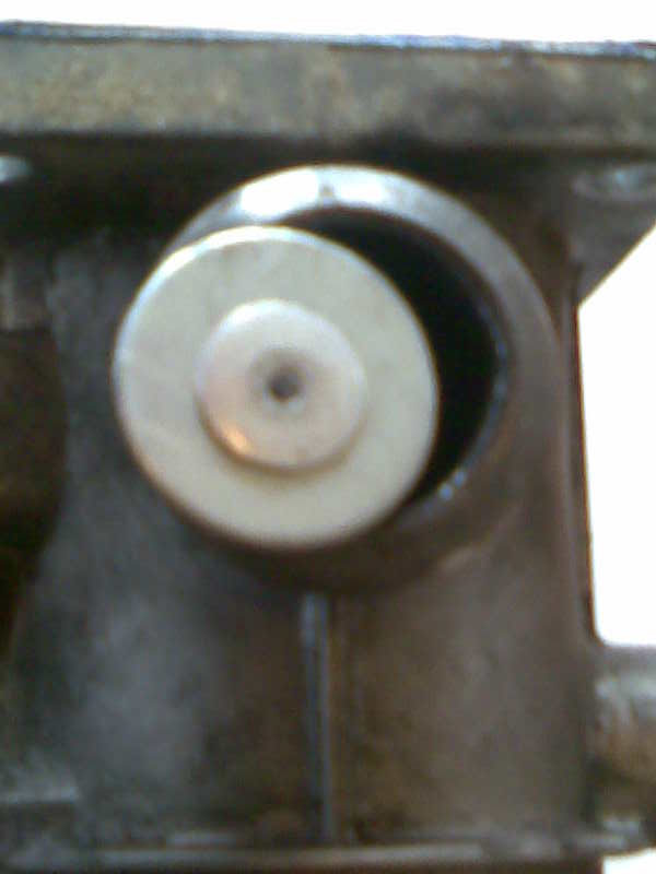 Et puis, j'aime le travail bien fait et j'avais la rondelle adéquoite ; dans le corps de la vanne, il y a une gorge et ma rondelle s'y glisse sans effort, et sans risque d'en sortir. pour boucher la rondelle, j'ai ajouté une 2ème rondelle, fixée à la première avec un rivet pop.