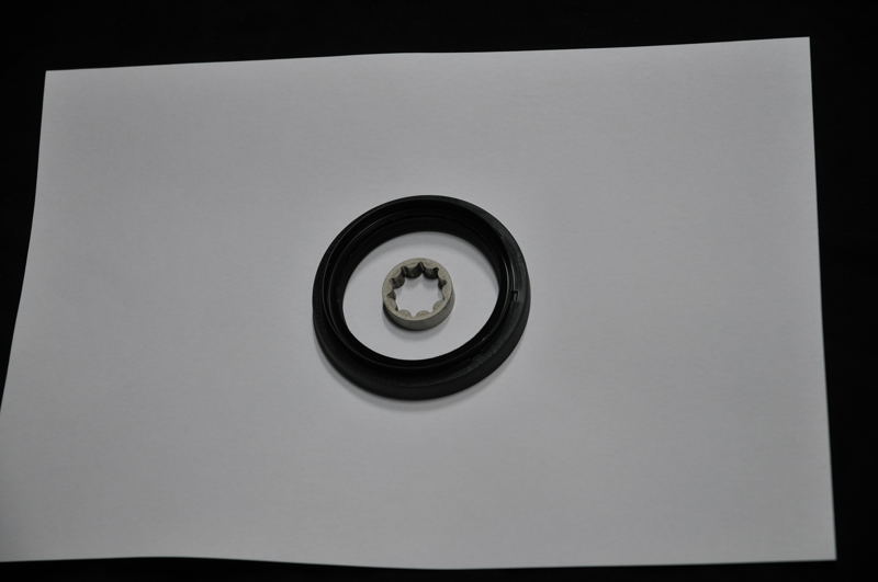 Joint de moyeux de Def et morceau de pompe de Td5 sur feuille blanche A4, très blanche, en réel.....