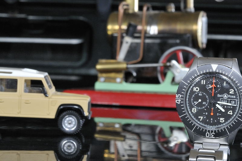 Le Def miniature est trop près de l'appareil et l'appareil peut faire le mise au point sur l'arrière plan. Il fait sombre donc il envoi le flash. Mais il envoi la puissance pour éclairer l'arrière plan et donc le Def miniature est trop éclairé.