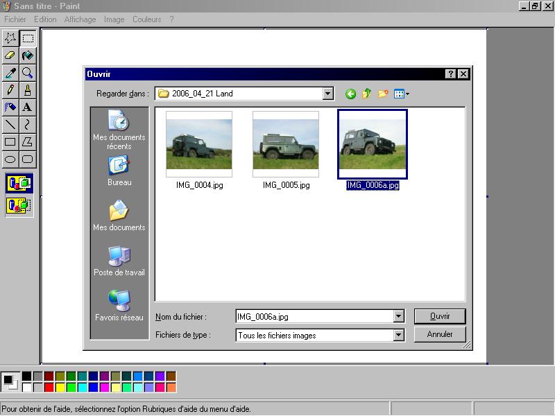 Paint s'ouvre : Pour ouvrir l'image dans "paint", Faites Ctrl+O. La fenêtre d'ouverture s'affiche. Recherchez votre image et cliquez dessus, puis cliquez sur Ouvrir.