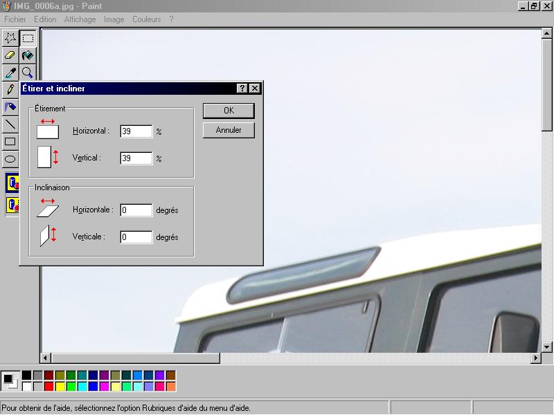 Pour le recadrage, "Paint" n'est pas d'une utilisation facile car pour les grandes résolution, on ne fait le recadrage qu'en voyant une petite partie de l'image à l'écran. Il y a des logiciels qui permettent des recadrages plus facile. Mais bon.