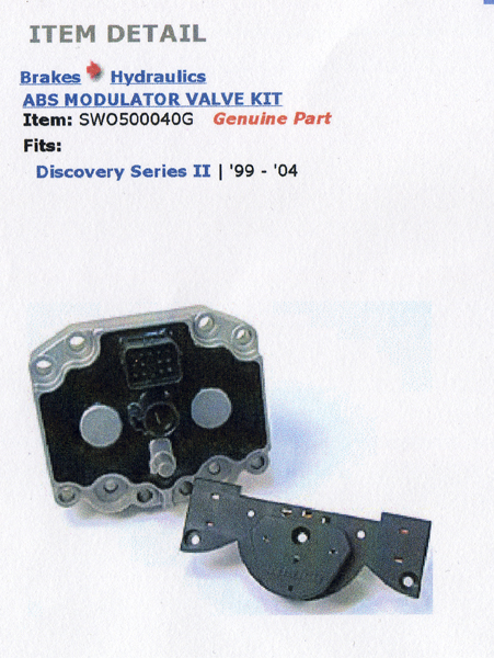 Depuis juin 2007 landrover a emis un nouveau bulletin technique remplaçant celui de 2006 et proposant un kit plus complet sous le nom de grouppe d'électrovannes Ref SWO 500040 mais cette fois au prix de 730 USD ( Le précedent n' etant sans doute pas assez cher)