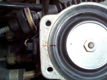 Il est également possible d’augmenter le débit général de la pompe en modifiant le réglage de la vis de butée de débit de pleine charge (cf coupe, n°4). Cette vis est à l’arrière de la pompe près des tuyaux d’injecteurs (on la voit sur la photo 1) et elle a une double protection : plombée avec un cache plastique qu’il faut enlever, et sertie avec un enrobage métallique très résistant qu’il faudra détruire. (Dremel recommandé). On peut faire le réglage par vissage jusqu'à 2 tours.