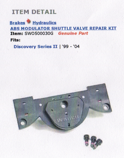 Depuis juin 2007 landrover a emis un nouveau bulletin technique remplaçant celui de 2006 et proposant un kit plus complet sous le nom de grouppe d'électrovannes Ref SWO 500040 mais cette fois au prix de 730 USD ( Le précedent n' etant sans doute pas assez cher)