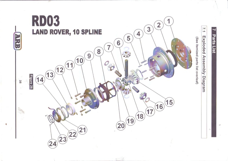 la fabrication de ton différentiel RD128 correspond au denier modèle conçu par ARB , les 2 miens trouvés il y a peu de temps correspondent à des versions un peu plus anciennes RD03 ( 10c) et RD56 (24c) où je dois changer les 2 joints toriques par précaution et ne m'ont pas été founis avec les Ecrous Crantés , éncoche et goupille..ext.