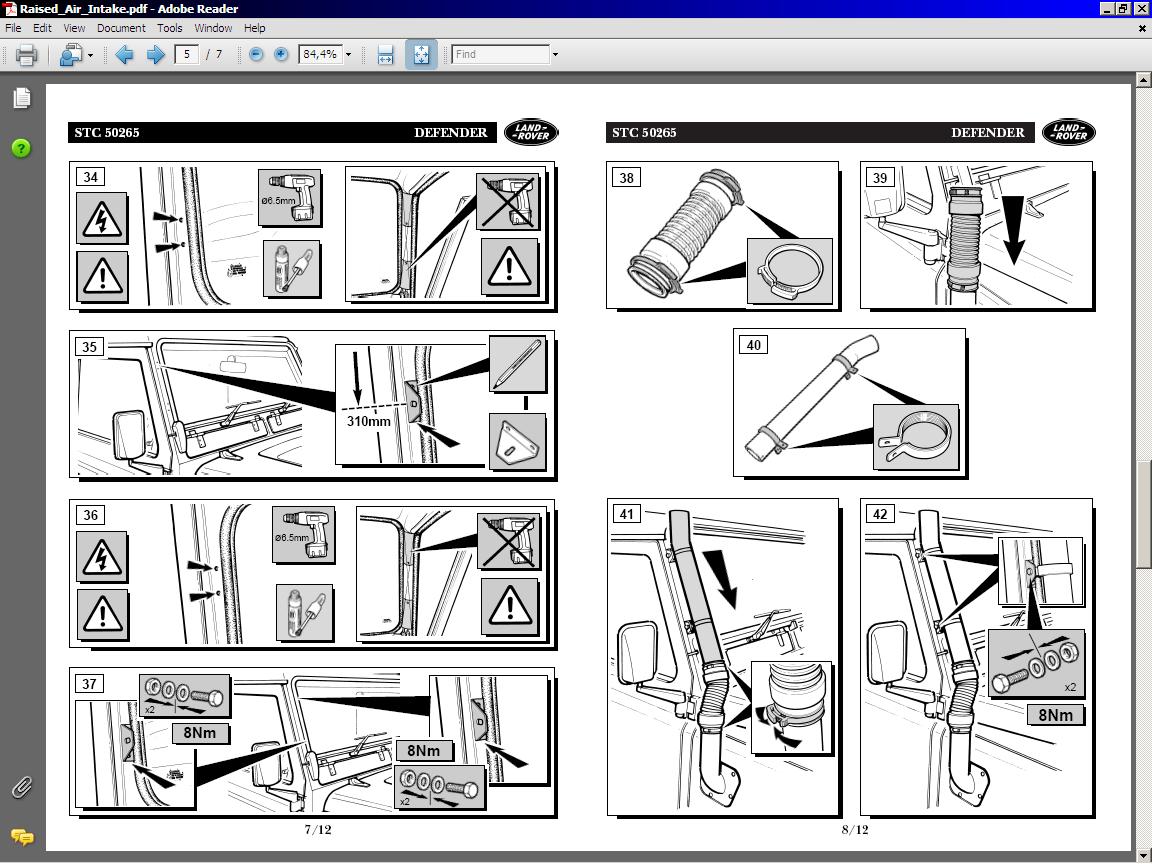 N'oublie pas qu'un schnorkel monté sans joints et certaines modifications ne protégera que contre les poussières, pas contre l'eau dans le cas de traversées de plan d'eau (ou autre) profonds. Mantec, ou LR indiquent bien ce qu'il faut modifier et rendre étanche. Safari est très avare.
