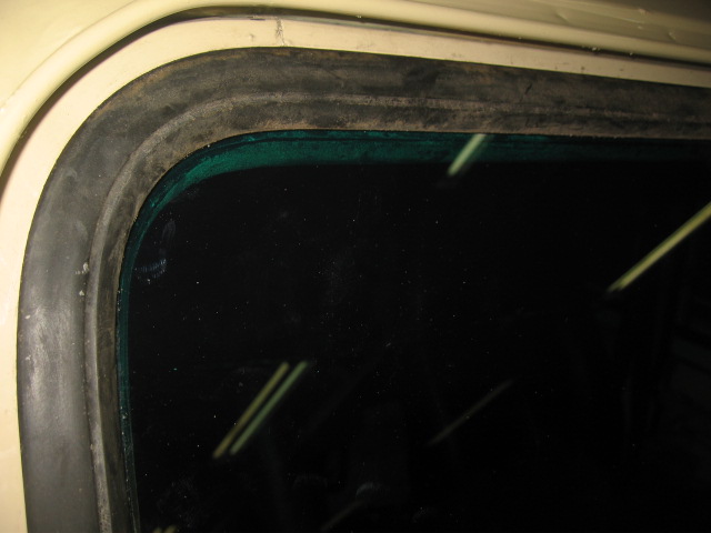 12) On tire sur la ficelle, et le miracle s'opère, la lèvre du joint vient recouvrir la baie. Au fur et a mesure que l'on tire sur la ficelle, elle sort, le joint prend sa place, et le pare brise se met en place. 13) Un raté sur la fin, la lèvre du joint, n'est pas bien en place sur 40 cm. 14) Le petit outil miracle pour venir à bout du joint récalcitrant, s'appelle un "os". 15) Fini, à noter la jolie petite bande verte sur le haut du pare brise. C'est une série limité à 10 exemplaires que le pote land poseur de parebrise a fait faire en Hollande je crois. Il n'y a plus qu’à faire les branchements...