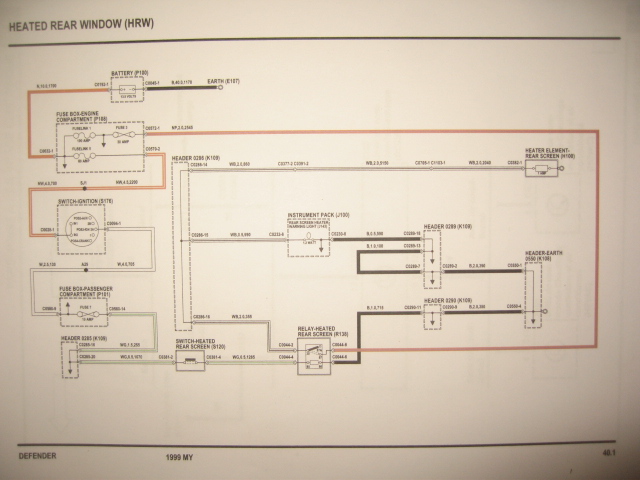 3) Détail extrait du schéma land rover. C'est le relais de commande du dégivrage arrière. Tu peux noter que les repères à l'intérieur du symbole ce sont les repères du constructeur du relais. A l'extérieur, les repères land rover. Autre chose qu'il est important de voir c'est le diamètre des fils associés, et la couleur. Un, pour ne pas tout bruler, deux, pour te repiquer sur l'existant. Soit: WB,2.0,355 C'est un fil Blanc avec un filet noir, que sa section est de 2mm carré et qu'il y a 35,5mm de fil entre le relais et le prochain élément qui peut être une épissure noyée dans le faisceau qui distribue le voyant et la résistance chauffante de la lunette arrière.