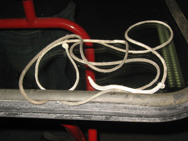 La ficelle, de bonne facture ma fois ni trop grosse, ni trop petite, adapté quoi. Ils ont fait un tour avec dans le creux ou se trouve le bâtis. La jonction des deux bouts étant dans le coin en haut à gauche. Il est conseillé de commencer par le haut, bon OK, je ne suis pas contrariant, juste un peu curieux Monsieur, c'est pour mes potes de la faq, vous savez que je pose toutes ces questions