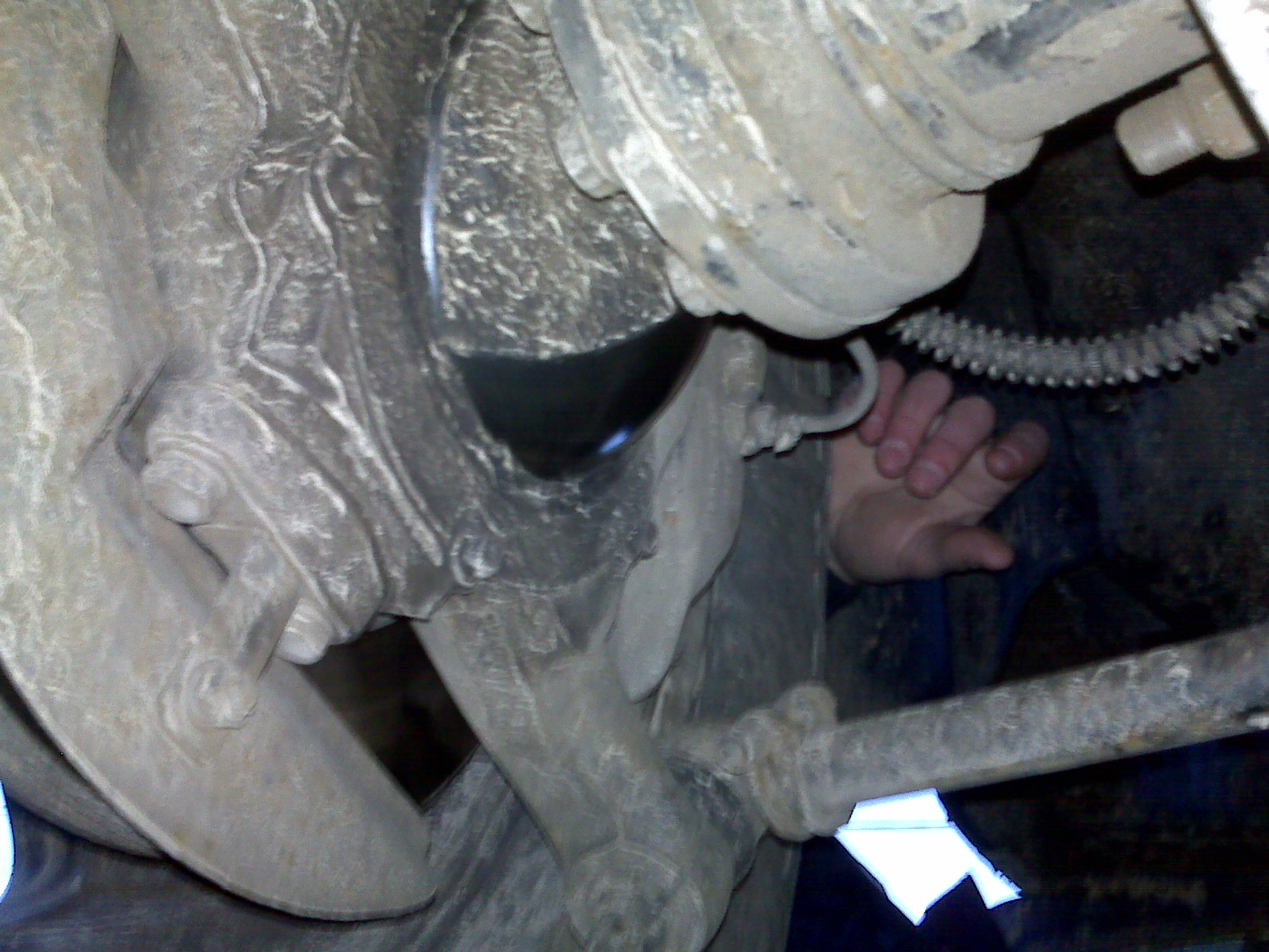 je cherche à savoir comment graisser les bols des pivots. J'ai 2 berlingots de graisse sous le coude. En PJ, la photo prise toute à l'heure, sous le def. Etant passé dans des chemins tres gras ce matin, il a le ventre assez sale. j'ai bien repéré le bouchon de remplissage mais pas celui de la vidange... Pour les traces brunatres sur le bol, juste de la terre un peu collante...