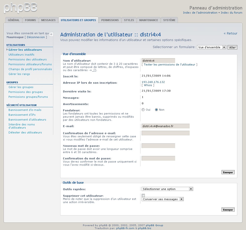 L'interface d'administration utilisateur d'un forum phpBB 3.0 apporte plein de renseignements aux administrateurs, regardez les deux screenshots ci-dessous :