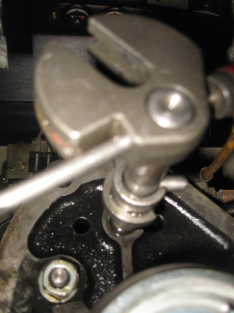 14)Ensuite, ben tout tient sans les vis provisoires. A ce stade, il faut faire un teste de passage de toutes les vitesses avec un tournevis à la place de la clavette méca-indus ou goupille creuse (7) en reprenant la procédure déjà vu ici sur lrfaq.