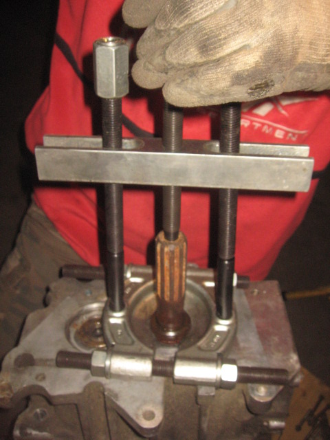 kebir31 a écrit : Dans ces cas, je laisse tomber l'extracteur à frette avant de le bousiller, et j'utilise un très gros extracteur à trois branches, pour pousser sur l'arbre principal, en tirant sur le carter de 5/MAR. Cela fait que la frette, en écrasant le joint-spi finit par pousser la bague extérieure du roulement de sortie vers l'intérieur, et le carter peut ainsi être ôté délicatement.: