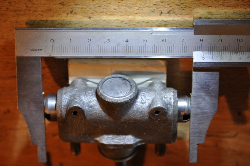 1)Ensemble des petites pièces de l'écarteur. ( Même principe que les freins à main land ancienne génération poste 300Tdi). Sauf verrouillage des cylindres à l'aide des petites petites goupilles qui sont souvent en triste état il n'y en a qu'une sur la photo car l'autre est HS. 2)Principe. On peut noter que les cylindres étaient bien piqués, j'ai eu un mal de chien à les sortir du corps. 3)Course mini. On voit le haut du cône de commande au raz du corps. 4)Course maximum. On peut noter sur le pied à coulisse quelle n'est vraiment pas longue. On voit le cône de commande enfoncé. 5)Écarteur en place sur la remorque. Réglage de la tension de tringlerie avec écrou contre écrou. Anticiper le dégrippage des écrous plusieurs jours à l'avance. 6)Tringlerie, contrairement aux apparences, c'est rarement ça qui déconne. A+