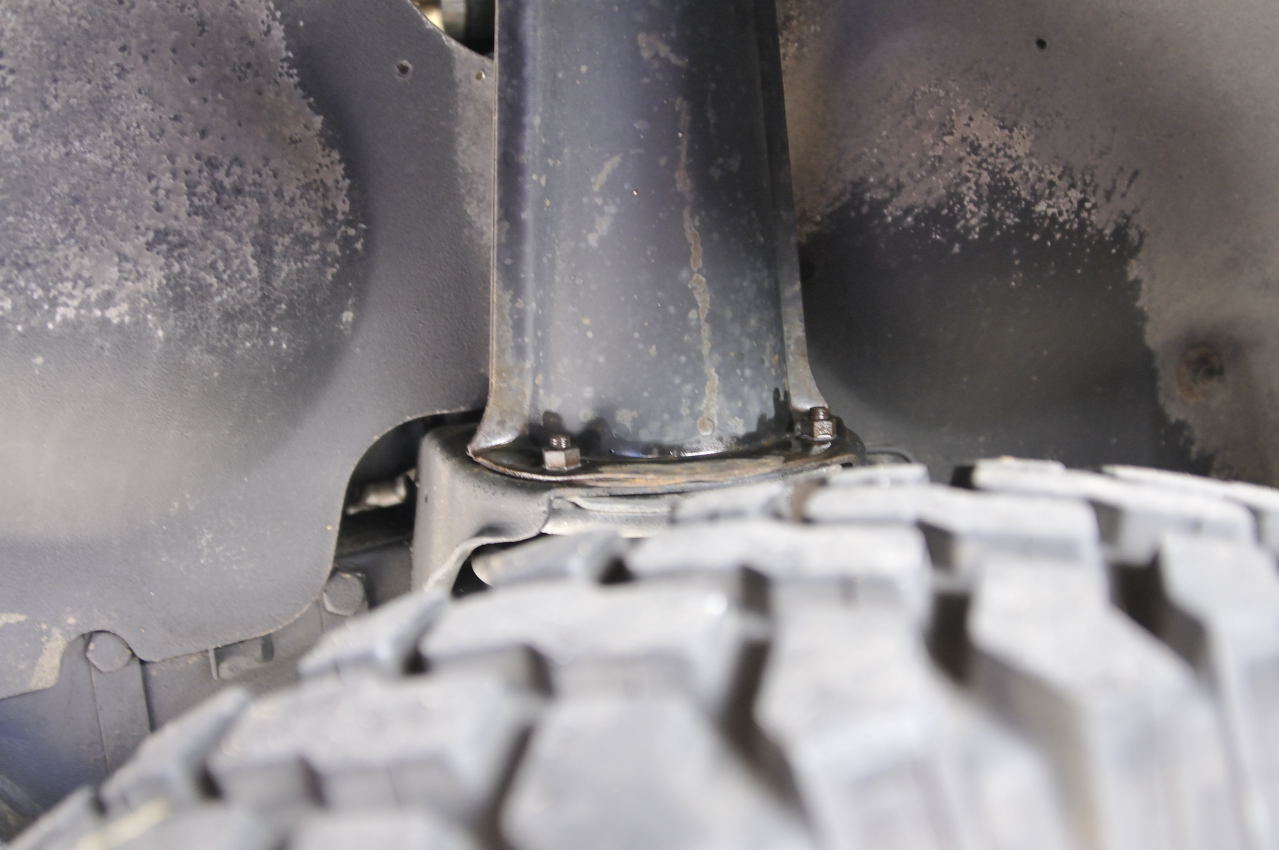 Dévisser les écrous de fixation de la tourelle au châssis par l'intérieur en utilisant des rallonges adéquates. Récupérer les écrous sans oublier les rondelles freins.