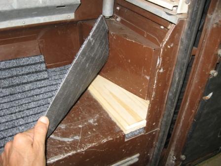 Je me suis aussi lancé dans l'habillage du sol et des banc de la cellule avec de la moquette bien costaude et caoutchoutée en dessous.
