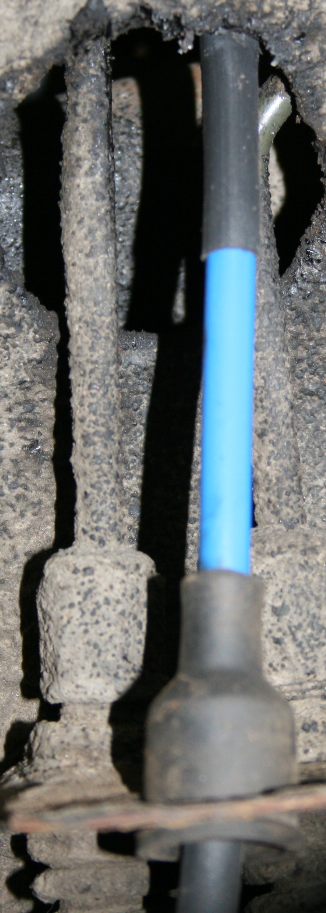 On fait passer le tube joliment gainé de noir par où on veut jusqu'au compartiment moteur, en commencant par le fixer avec des colliers aux flexibles de freins.