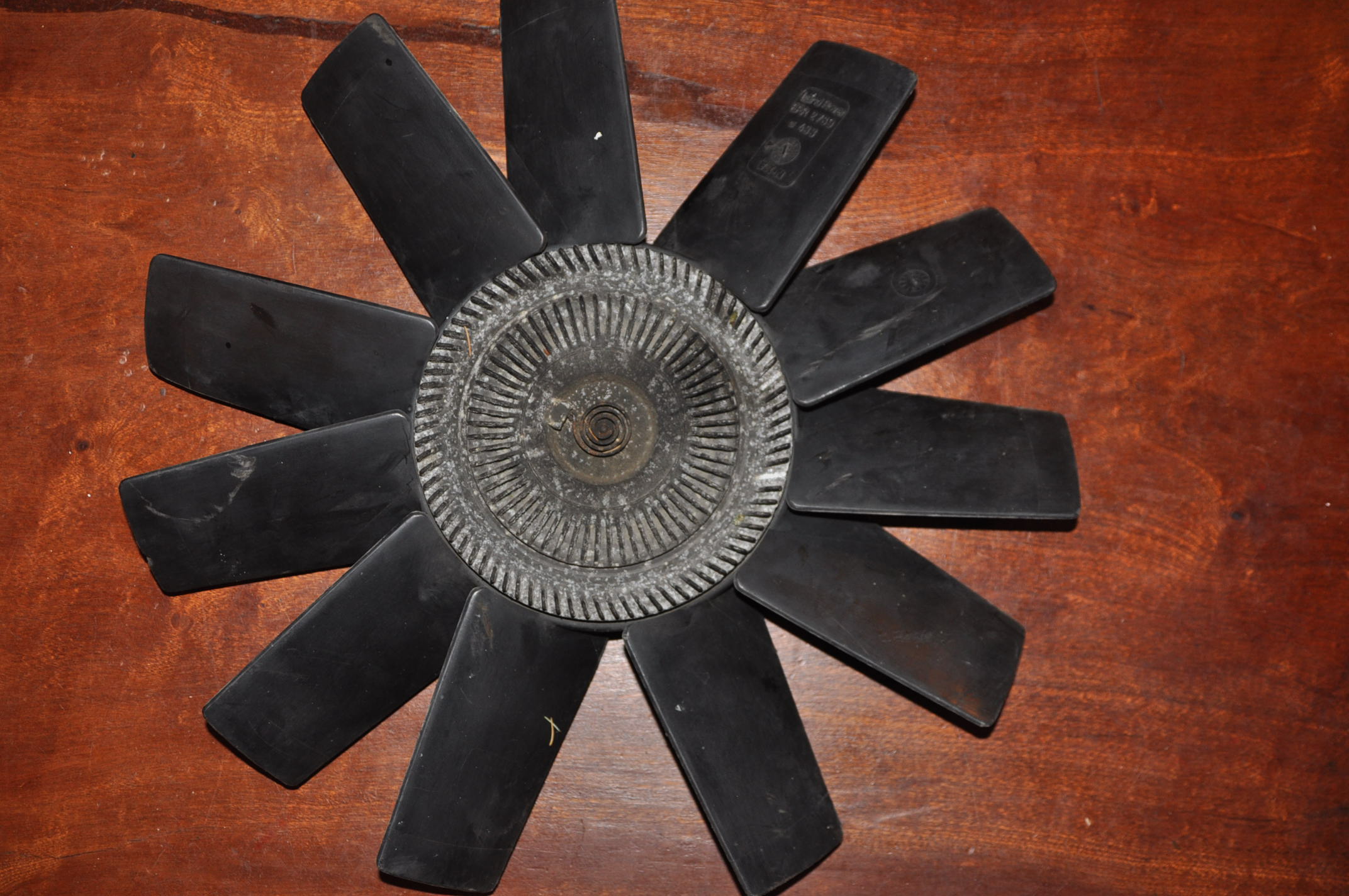 1) Le viscocoupleur c'est la partie au centre du ventilateur avec les ailettes. A l'intérieur, il y a un liquide "visqueux" et des disques ( un jour j'en couperai un en deux...). Avec la chaleur, le liquide visqueux s'épaissi ce qui provoque une solidarisation du ventilateur avec son moyeu. A froid tu dois pouvoir tourner les hélices sans problème avec une légère résistance onctueuse. A chaud cela doit être beaucoup plus dure si visco OK. 2) L'écrou de 32 ( dit petit ). Il ne doit pas y avoir de jeux: Tu vois le jeux ou tu sents le jeux lorsque tu "branle" d'avant en arrière en tenant par l'extrémité des pales de l'hélice du ventilateur, si il y a du jeux pas bon. Souvent cela s'accompagne d'une présence même légère de "gras" genre trace de gasoil (liquide visqueux)répartie de façon homogène autour de l'écrou sur la partie aluminium. Pas bon