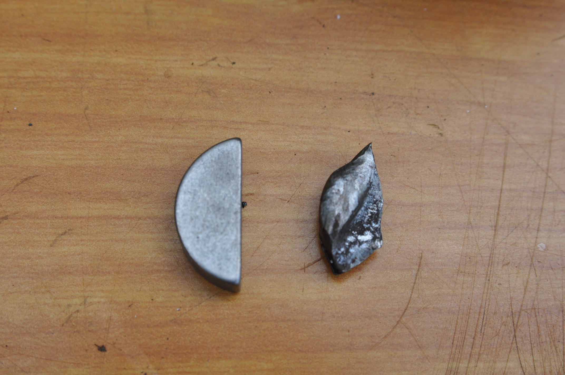 8 ) Clavette de la poulie d'entrainement de la courroie de distribution, on voit bien le cisaillement qui s'opérait.
